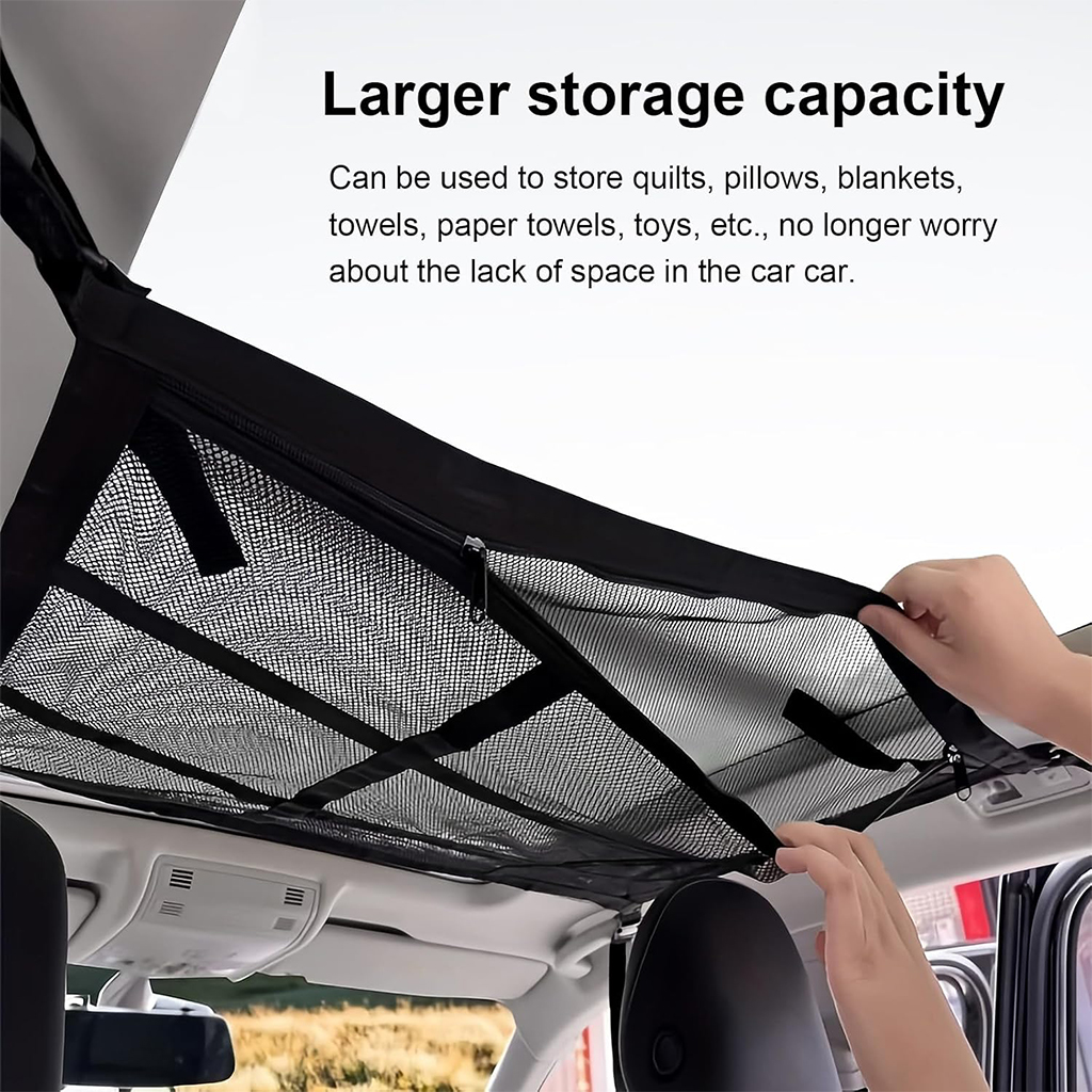 شبكة التخزين على سقف السيارة تتيح لك تنظيم الملابس والألعاب المختلفة للأطفال بسهولة. وعند الذهاب في رحلة تخييم، يمكنها أيضًا تخزين الأشياء الكبيرة والخفيفة مثل الوسائد، البطانيات، أو المعاطف المنفوخة. تمنع الأشياء من التحرك أو السقوط أثناء القيادة، مما يجعلها متينة وآمنة.