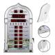 Caractéristiques:-Azan complet pour toutes les prières (avec contrôle du volume)-Alarmes de prière pour rappeler toutes les prières à lqamah ou salat-Temps de prière pour la plupart des villes du monde, avec système azan taqweem-Pourrait être utilisé facilement selon le code téléphonique international en particulier dans al-harameen-Pourrait modifier facilement les différents temps de prière dans les banquets des villes-La possibilité d’allumer ou d’éteindre le son azan séparément-Affichage de la température, calendrier hijri et grégorien-Option d’heure d’été, lumière plein écran-Commutateur de contrôle du Volume, prise cc pour l’alimentation