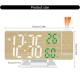 Affichage LED Clair : Grand écran LED assurant une lecture facile de l'heure, même à distance.Projection de l'Heure : Fonction de projection rotative permettant de projeter l'heure sur le mur ou le plafond pour une visualisation pratique, surtout la nuit.Relevés de Température et d'Humidité : Surveillance en temps réel des conditions ambiantes pour un confort optimal.Réglage de la Luminosité : Options de luminosité ajustables pour s'adapter à vos préférences, garantissant une visibilité parfaite de jour comme de nuit.Design Polyvalent : Convient à toutes les pièces, que ce soit la chambre, le bureau ou le salon, ajoutant une touche moderne à votre décoration intérieure.