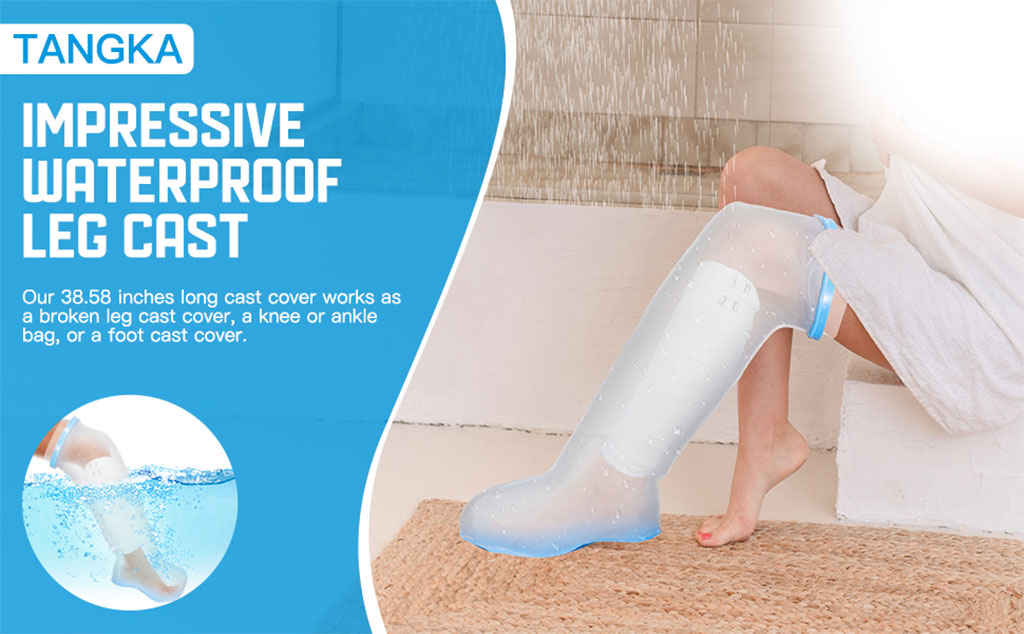 تم تصميم غطاء الجبيرة خصيصاً للأشخاص الذين يعانون من الجبائر، الضمادات، الطفح الجلدي، الجروح، الحروق، الخدوش، الغرز، أو الأحذية الطبية. يحمي أيضاً من تسرب الماء على الدعامات الجراحية للركبة، أنابيب PICC/IV وغيرها من المناطق المصابة.