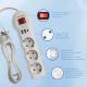 La multiprise dispose de 3 prises, d’un câble de 2 m, d’un interrupteur pour pouvoir l’éteindre sans la débrancher, et de 2 ports pour charger les appareils