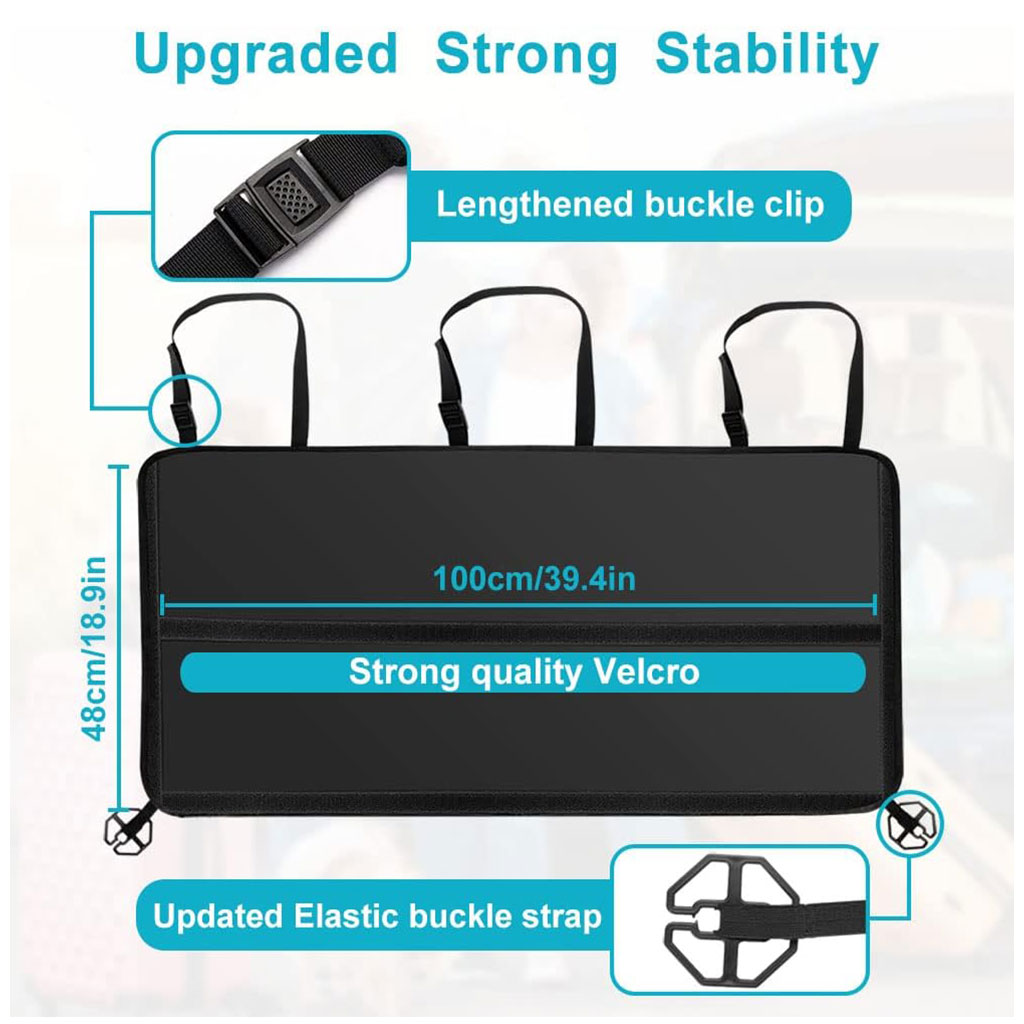 💪 ثبات معزّز ثلاثي التقنيةنظام تثبيت ثلاثي: فيلكرو قوي + حزام علوي + حلقتان مطاطيتان محدثتان لثبات مثالي حتى عند حمل الأغراض الثقيلة.التصميم الجديد يمنع انزلاق المنظّم حتى على المقاعد الجلدية حيث لا يلتصق الفيلكرو عادةً.🧩 سعة تخزين كبيرة ومنظمةيحتوي على جيوب متعددة بأحجام مختلفة لتخزين الأدوات، القفازات، زجاجات المياه، الكتب والمزيد.جيب كبير مخفي بمقاس 45×30 سم مثالي لتخزين الأغراض الكبيرة مثل طفايات الحريق أو معدات السفر.🧼 خامة عالية الجودة وسهلة التنظيفمصنوع من قماش بوليستر PVC سميك ومتين مقاوم للتمزق والماء وخالٍ من الروائح.آمن للأطفال، قابل للغسل في الغسالة أو يمكن تنظيفه بسهولة بمنديل مبلل ليستعيد مظهره الجديد في ثوانٍ.🚙 مناسب لمعظم السياراتالأبعاد: 100 × 48 سم – يناسب أكثر من 95٪ من سيارات SUV، الميني فان، والصالون.مثالي للرحلات، التخييم، أو العائلات مع الأطفال لتنظيم الصندوق وتوفير مساحة إضافية.⚙️ تثبيت سريع بثلاث خطوات فقطثبّت المشابك الثلاثة القابلة للتعديل حول مساند الرأس.ثبت الفيلكرو خلف المقعد.أدخل الحلقات المطاطية الجانبية بين المقاعد.✨ منظّم Ezilif – الحل الذكي الذي يحافظ على سيارتك مرتبة دائمًا!
