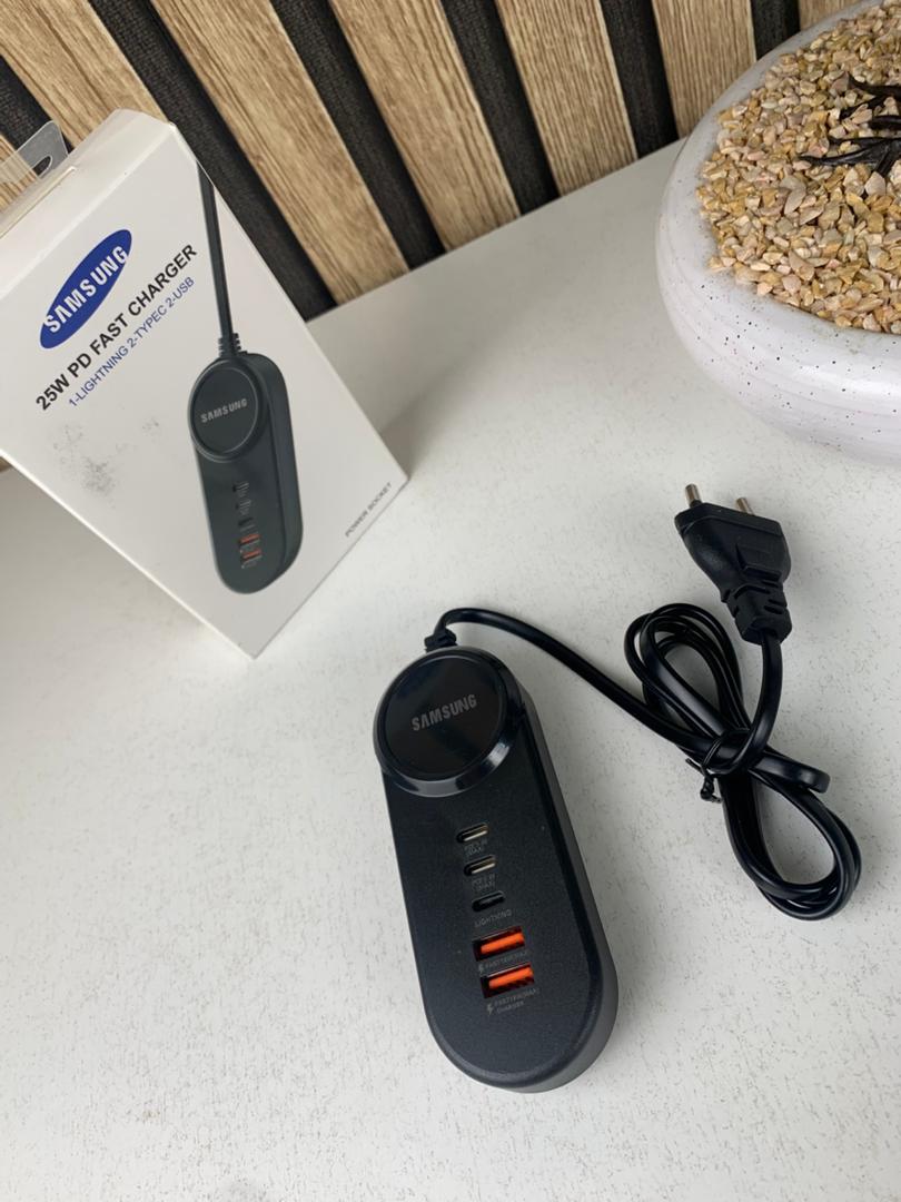 🔌 المواصفات التقنية :الطول : 80 سم – مثالي للاستخدام اليومي دون تشابكعدد المنافذ : 5 منافذ في كابل واحد🔋 منفذان Type-C بقدرة 25W لشحن سريع ومستقر⚡ منفذان USB بقدرة 18W كحد أقصى لشحن الأجهزة الكلاسيكية بكفاءة🍏 منفذ Lightning مخصص لأجهزة iPhone وiPad💪 أداء فائق وتصميم عملي✔️ شحن خمسة أجهزة في وقت واحد دون فقدان في السرعة أو الأمان.