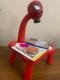 Une table avec un projecteur6 superpositions avec 6 images à redessinerÉponge abrasiveCarnet de dessin pour photosSet de 12 marqueursMatière : plastiqueÂge de l’enfant : 3+Alimentation : 3 piles AA (non incluses)Dimensions :