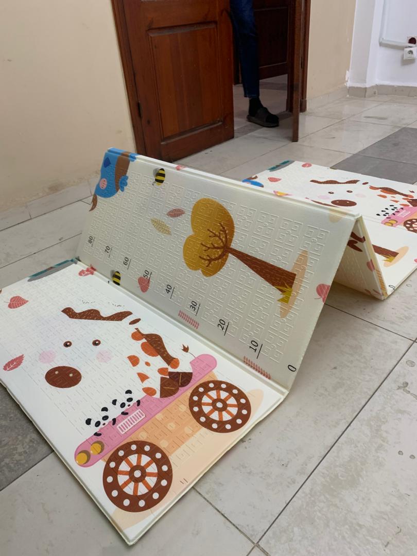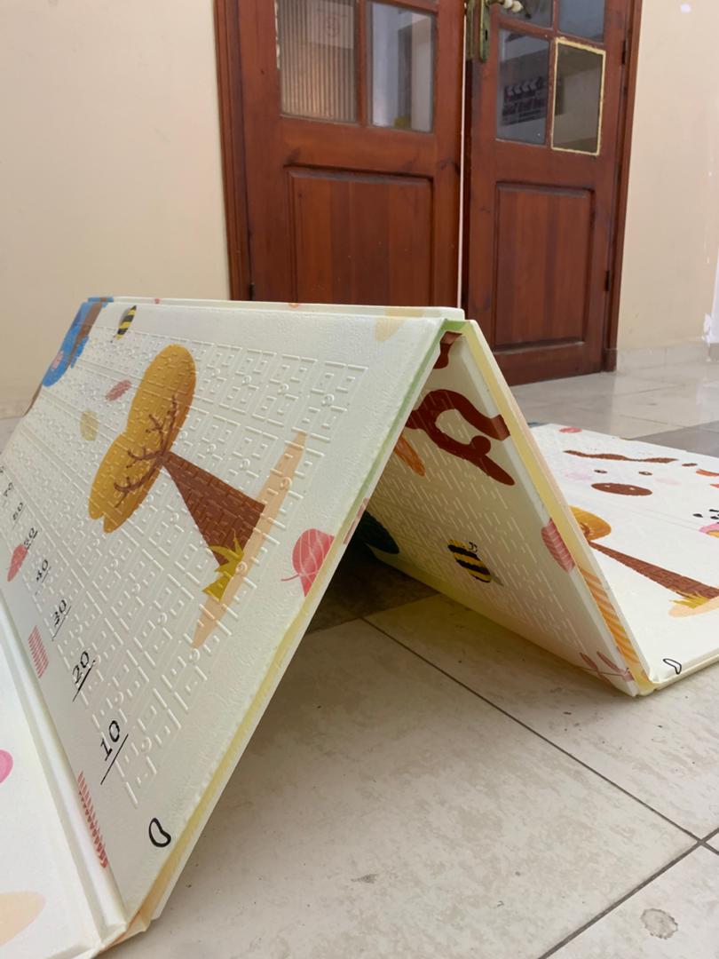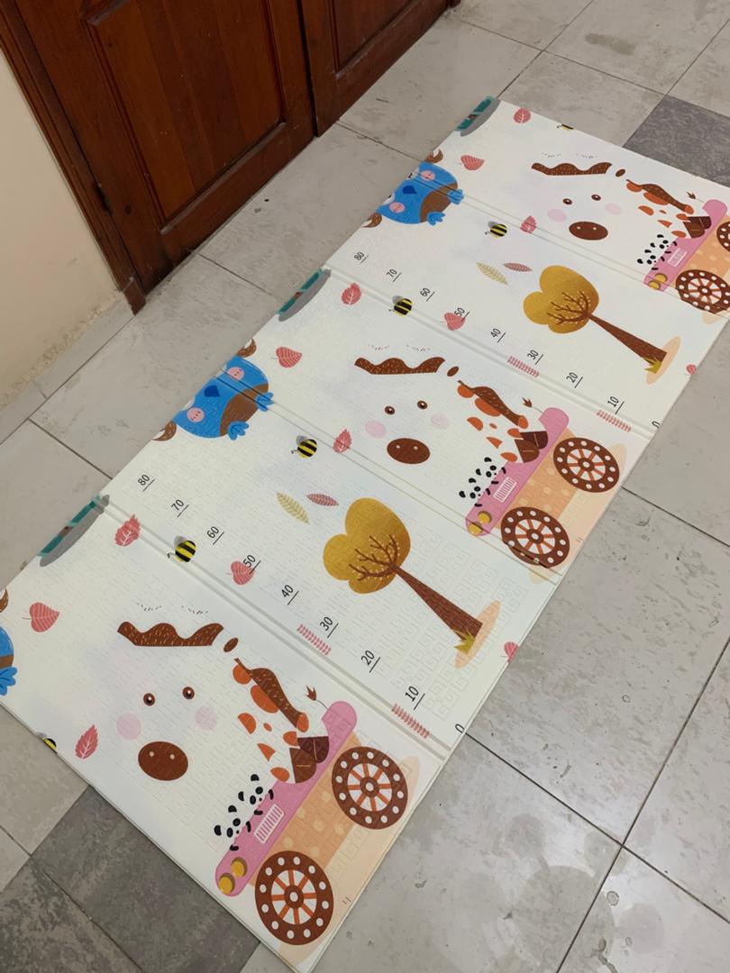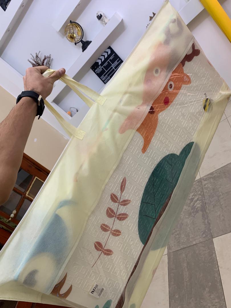 سجادة لعب تعليمية للأطفال من Humbiالمادة: مصنوعة من رغوة XPE غير سامة وآمنة 100%.الأبعاد: 200 × 180 × 1 سم توفر مساحة واسعة وآمنة للعب.المميزات: قابلة للطي، بطبعة مزدوجة، مقاومة للماء، عازلة للحرارة، خالية من PVC والفثالات.التصميم: وجه يحتوي على رسومات حيوانات جميلة، والوجه الآخر شوارع ملونة لتعليم الأطفال.التعبئة: تأتي في حقيبة بسحّاب وصندوق كرتوني قوي.الاستخدام: مناسبة منذ الأيام الأولى للطفل لتوفير مكان آمن وناعم للزحف واللعب والتعلّم.
