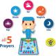 15 langues – anglais, arabe, allemand, français, espagnol, ..ext Livret d’activités gratuit de 20 pages, livret de guide des parents, manuel illustré 36 touches tactiles, contrôle du volume réglable, matériau étanche, résistant au feu, approuvé et réussi les tests de sécurité EU, US et GCC. Les coussinets tactiles permettent au tapis de prière de reconnaître et de répondre aux positions de prière spécifiques. Par exemple, lorsque quelqu’un place les deux pieds sur l’emplacement des pieds sur le tapis de prière, les capteurs de My Salah Mat reconnaissent la pression et la première action de la prière musulmane est entendue (Allahu Akbar), suivie de la sourate Fatiha. My Salah Mat rend Salah amusant, facile et interactif, encourageant les enfants à accomplir leurs prières.Dimensions : 120×71 cm.