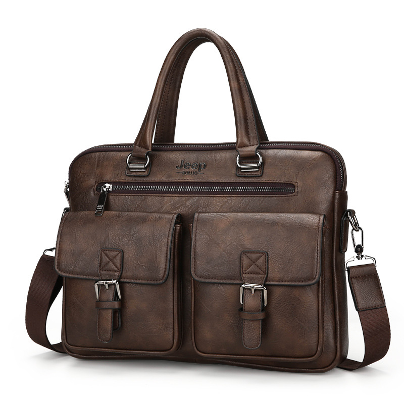 Cartable Homme en Simili Cuir Design Élégant Jeep Marron Foncé – حقيبة جلدية لون بني داكن