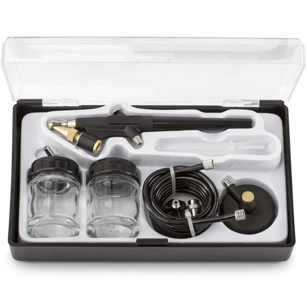 أيروغراف أحادي الحركة (Single Action)تغذية سفلية للسوائلنظام مزج خارجيإبرة دقيقة بحجم 0.8 مم لرش واسع🎁 المجموعة تحتوي على :