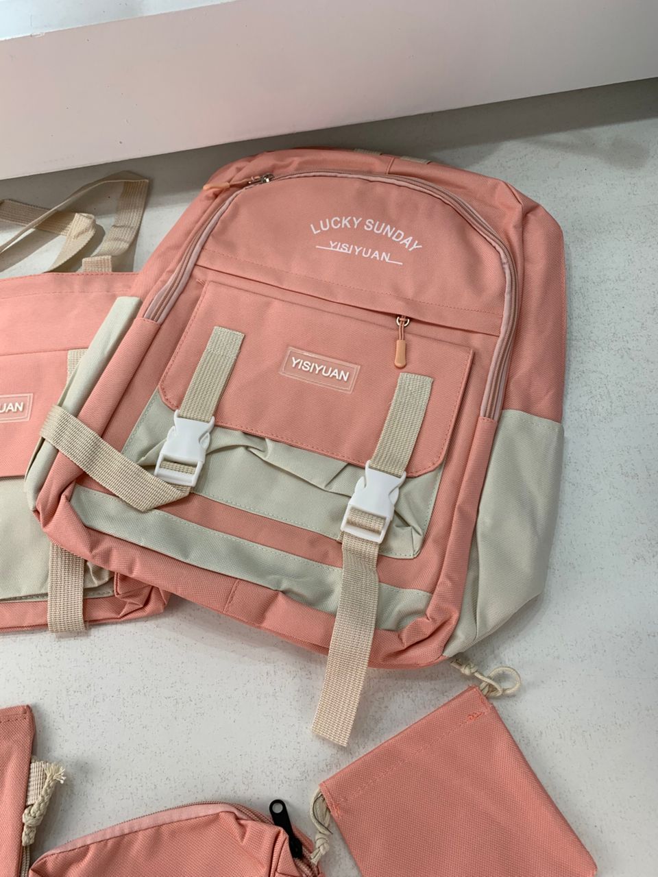 ⚡ المميزات الرئيسية :🎒 الخامة: نايلون مقاوم للماء و التآكل👌 الراحة: أحزمة كتف عريضة و قابلة للتنفس📦 السعة: 4274,8 سم³ – تكفي للملابس، الكتب، و الأجهزة الإلكترونية🧳 تنظيم سهل: عدة جيوب باش ترتب كلش🖤 التصميم: ستايل كاواي بمقبض أسود📏 الأبعاد والوزن :الأبعاد: 18 × 34 × 45 سم (7,1 × 13,4 × 17,7 بوصة)الوزن: 580 غرام (1,28 باوند)الفئة: بنات / بالغين⚠️ الإكسسوارات غير مشمولة