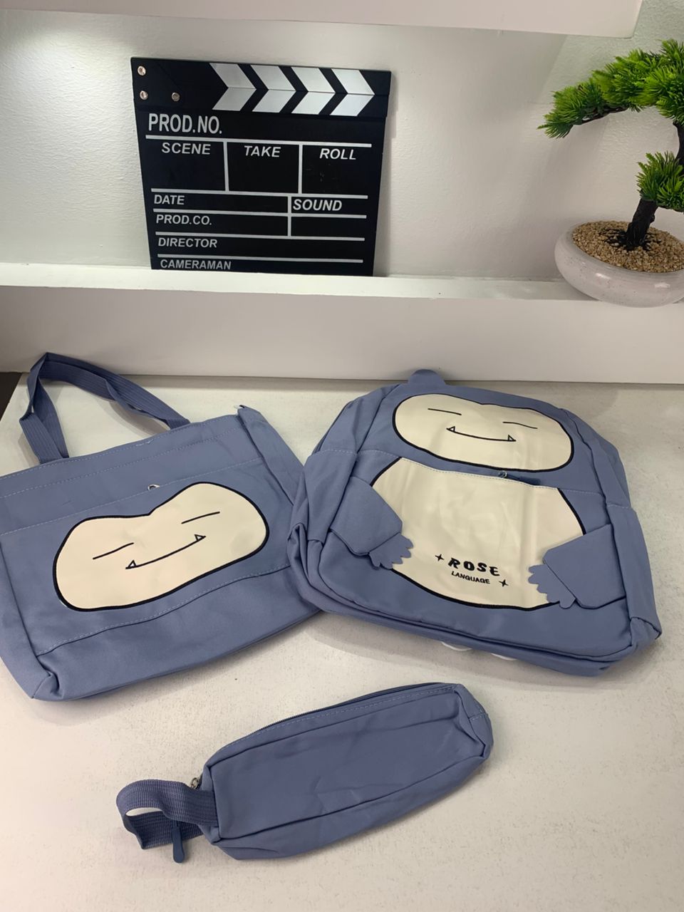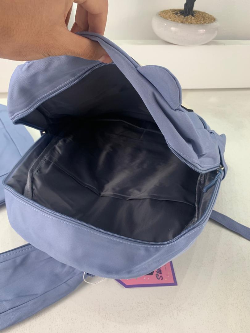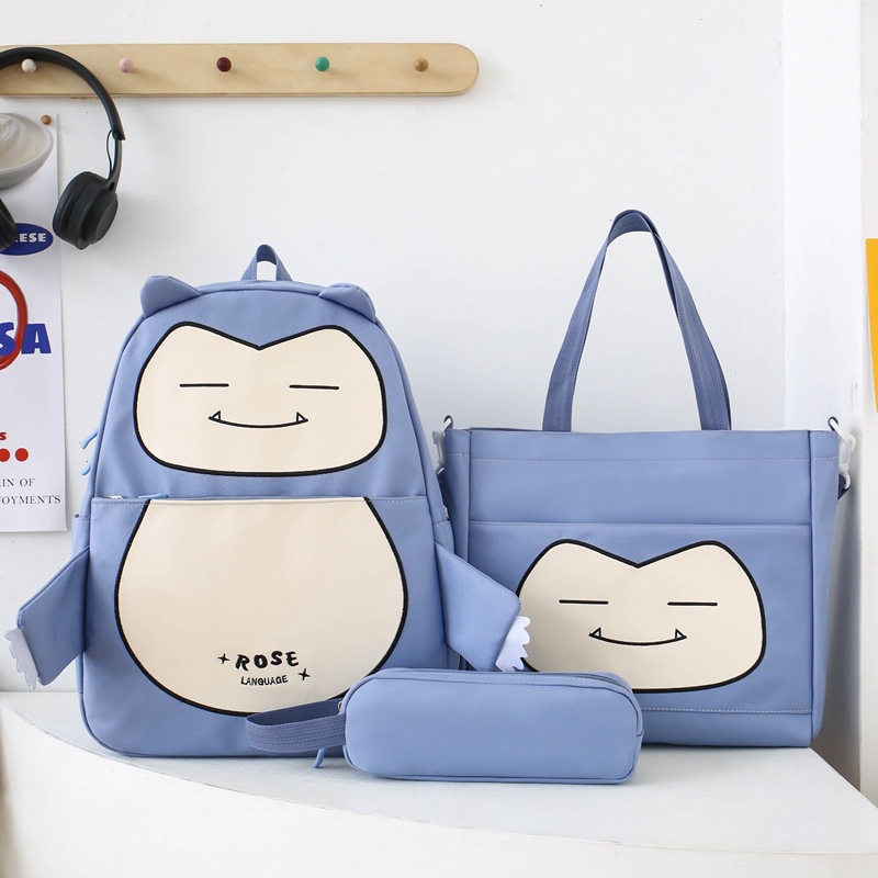 Ensemble de Sacs Snorlax 3Pcs Design Kawaii Bleu – حقيبة مدرسية 3 قطع لون أزرق