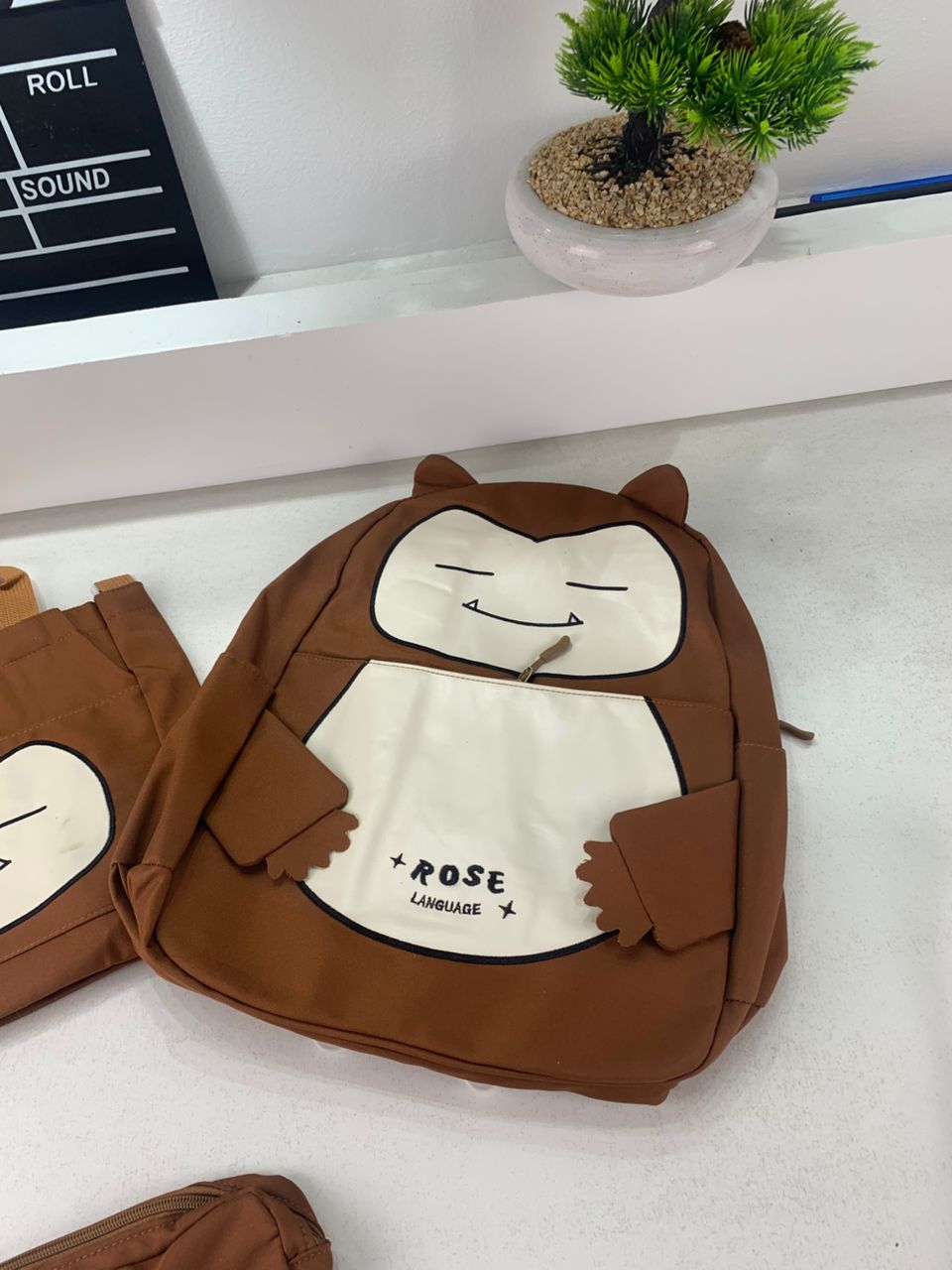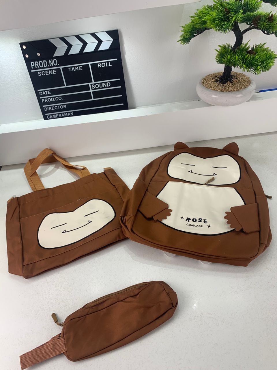 ✨ المميزات الرئيسية :🎒 حقيبة ظهر واسعة مع جيب أمامي بسحاب، وأحزمة كتف قابلة للتعديل، وتصميم بارز بالتفاصيل.👜 حقيبة Tote عملية للتسوق، الخرجات، أو كسند إضافي يومي.✏️ مقلمة صغيرة مثالية للأقلام، الإكسسوارات أو الأغراض الصغيرة.😴 تصميم كرتوني بوجه Snorlax مطبوع على كل قطعة، لإطلالة مرحة ومميزة.🛡️ مواد متينة وخياطة معززة للاستعمال اليومي الطويل.📏 الأبعاد: 40×31×14 سم.👉 مع هذا الطقم، راح تستمتع بمزيج بين العملية و الأناقة المرحة في كل يوم!