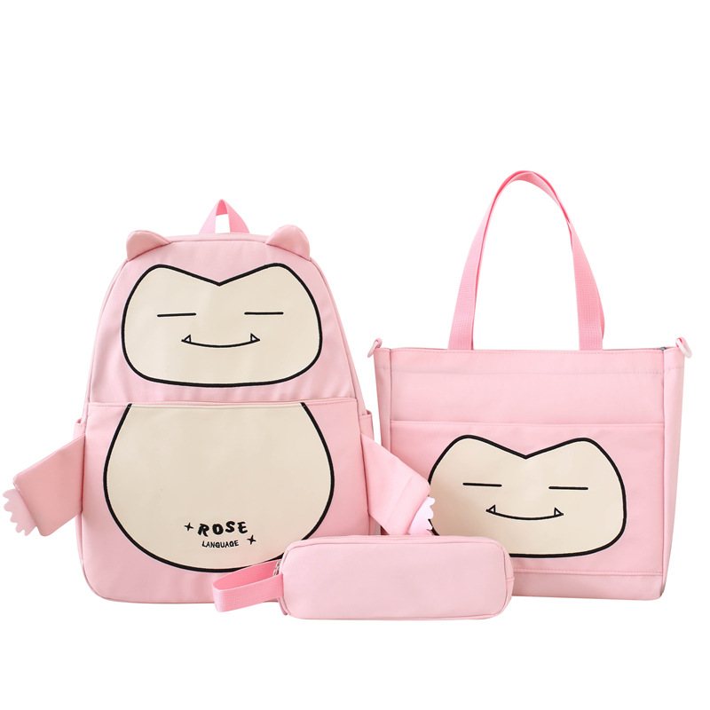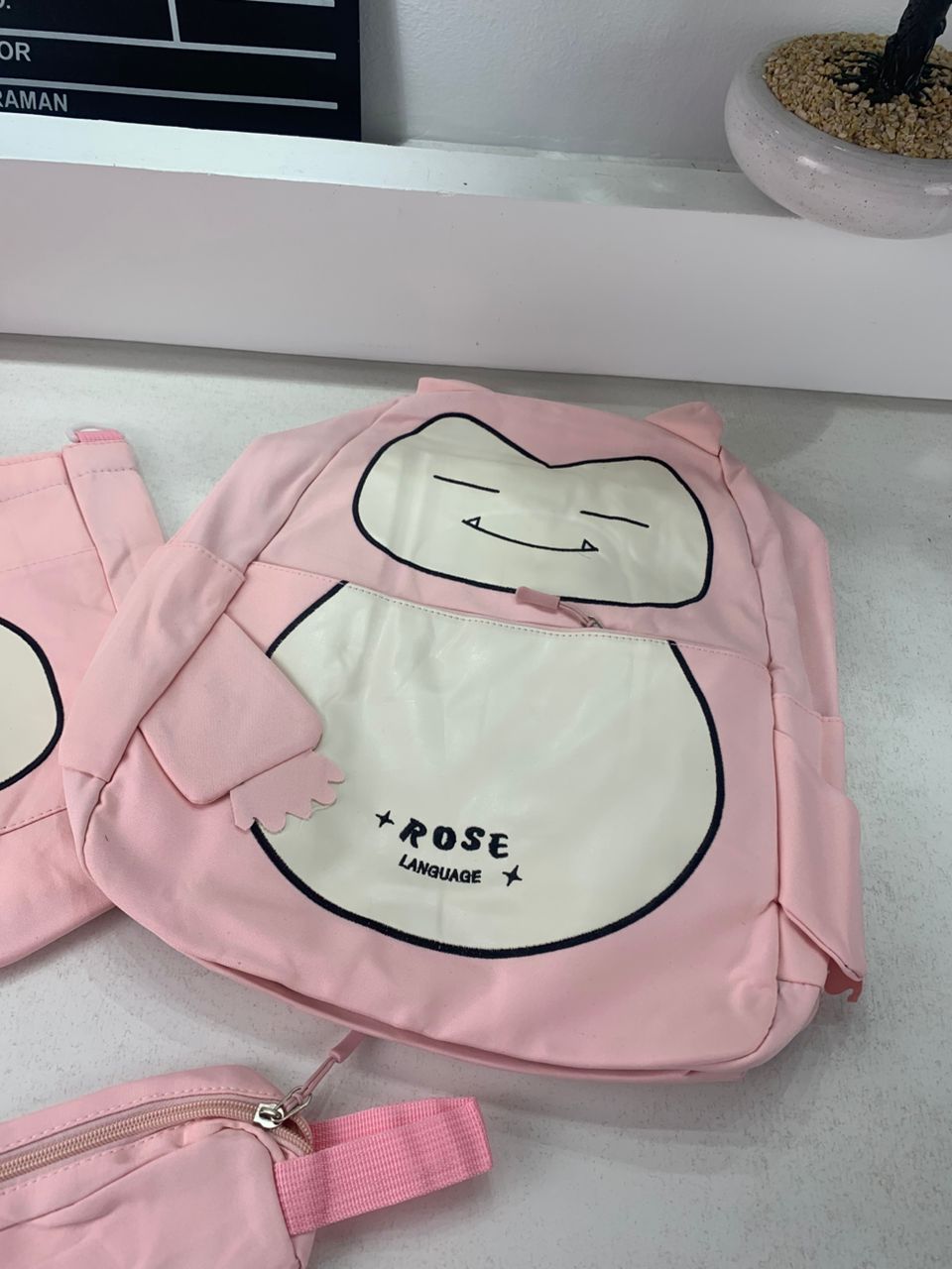 Ensemble de Sacs Snorlax 3Pcs Design Kawaii Rose- حقيبة مدرسية 3 قطع لون وردي