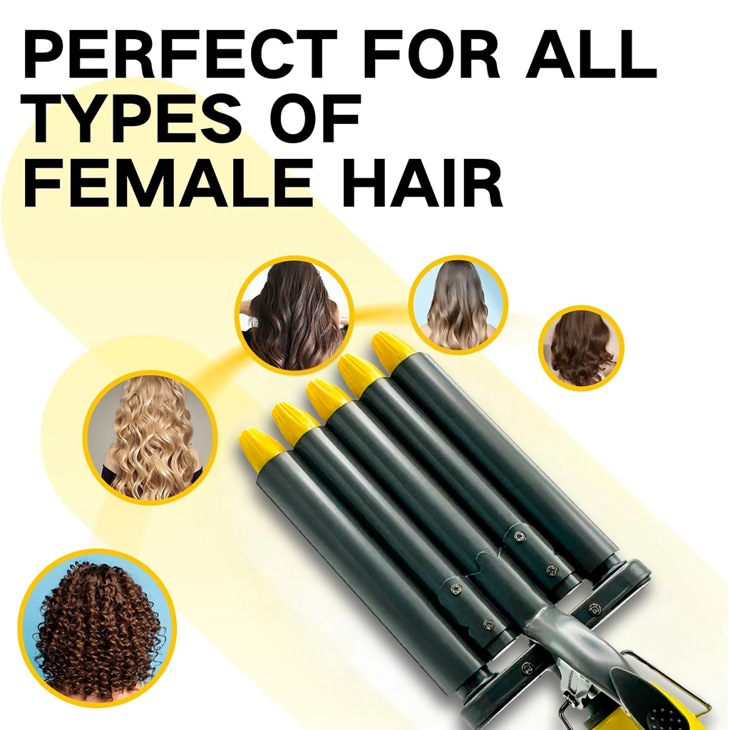 يعتمد على تكنولوجيا تسخين PTC المناسبة لكل أنواع الشعر (كثيف / رقيق).السيراميك يسخن ويوزع الحرارة بالتساوي لإنتاج أيونات سالبة تعطيك تموجات ناعمة ولمّاعة.النتيجة ➝ تجعيدات طبيعية وأنيقة تدوم طوال اليوم.⚡ سهل الاستعمال :