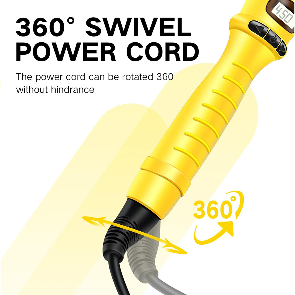مجهز بكابل دوار 360° ومقبس كهربائي (110-120V).لا مزيد من تشابك الأسلاك.تصميم معدني أنيق + طبقة سيراميك عالية الجودة.مثالي للاستعمال اليومي أو للسفر ✈️.هدية ممتازة للأحباب في عيد ميلاد، فالانتاين أو مناسبات خاصة 🎁.🌡️ أقصى درجة حرارة : 980°F (≈ 210°C).