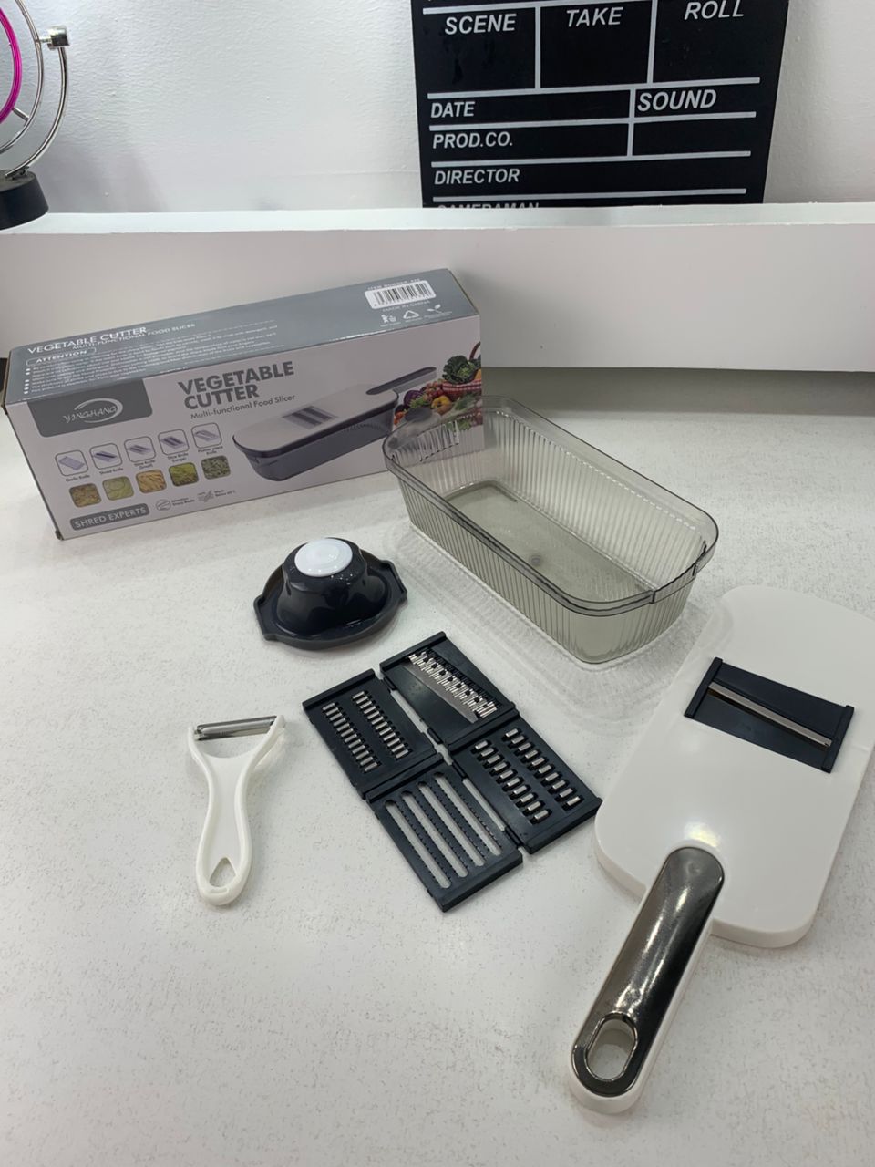 شفرات قابلة للتبديل 🛠️ : طقم احترافي يحتوي على 6 شفرات من الفولاذ المقاوم للصدأ لتقطيع، بشر وتقطيع الخضار بسماكات مختلفة.تحكم دقيق في السماكة 📏 : نظام ضبط يسمح باختيار السمك من شرائح رفيعة جدًا إلى قطع أكثر سماكة.حاوية مدمجة 🥗 : مزودة بحاوية لجمع المكونات المقطعة والحفاظ على مساحة العمل نظيفة.مواد متينة 💪 : مصنوعة من فولاذ عالي الجودة لضمان المتانة والأداء الاحترافي.تصميم مريح وآمن ✋ : مقبض مريح وغير قابل للانزلاق لسهولة التحكم أثناء التقطيع.📐 الأبعاد : 25 × 14 × 8 سم
