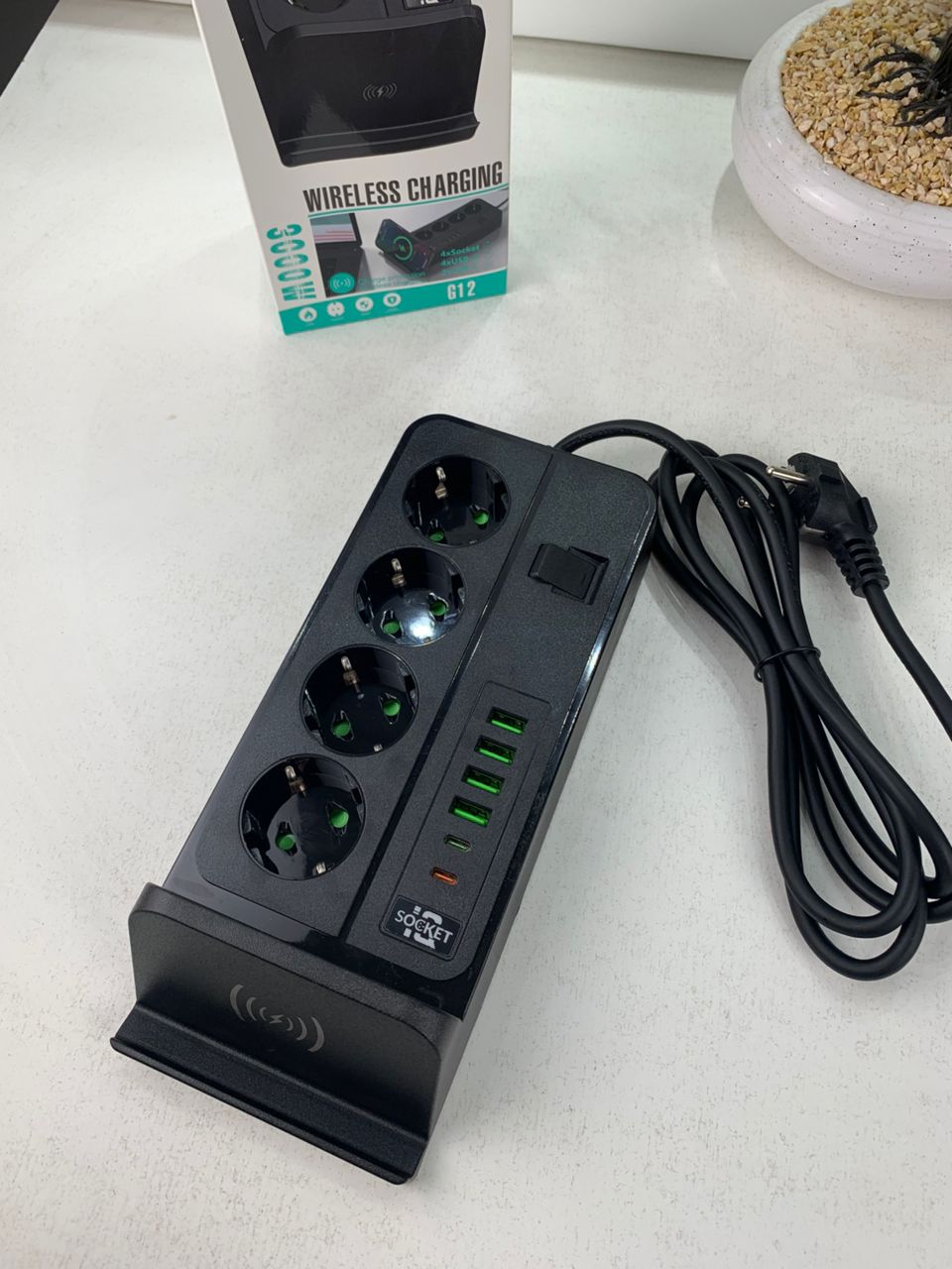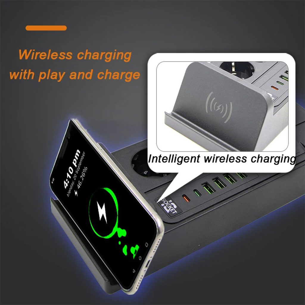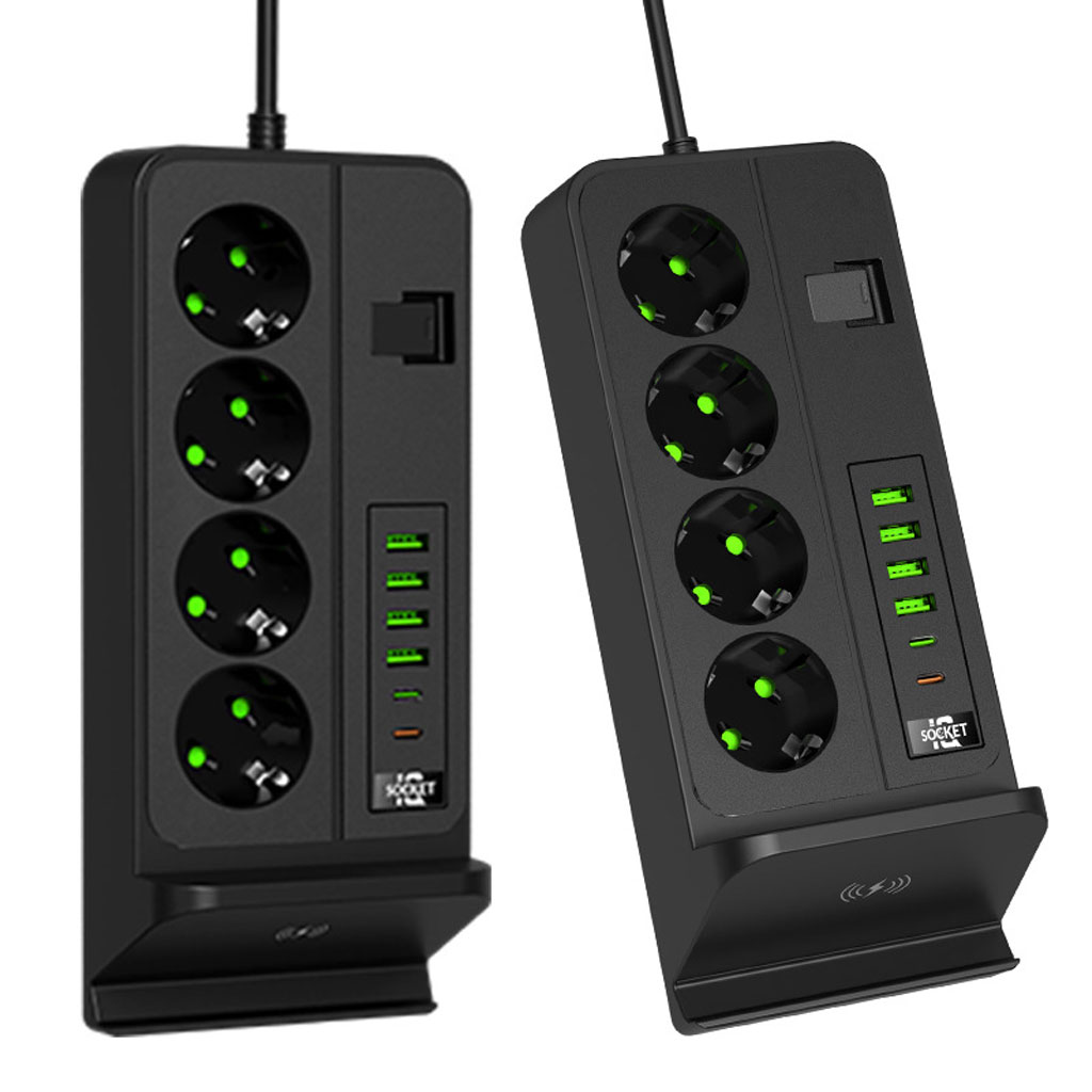 ارتقِ بمكتبك أو منزلك مع هذه المقبس العمودي العصري المصمم خصيصًا لتلبية احتياجات العصر الحديث. يجمع بين المقابس الكهربائية التقليدية و منافذ الشحن السريع USB إضافةً إلى قاعدة شحن لاسلكي متطورة، كل ذلك في تصميم أنيق وموفّر للمساحة.