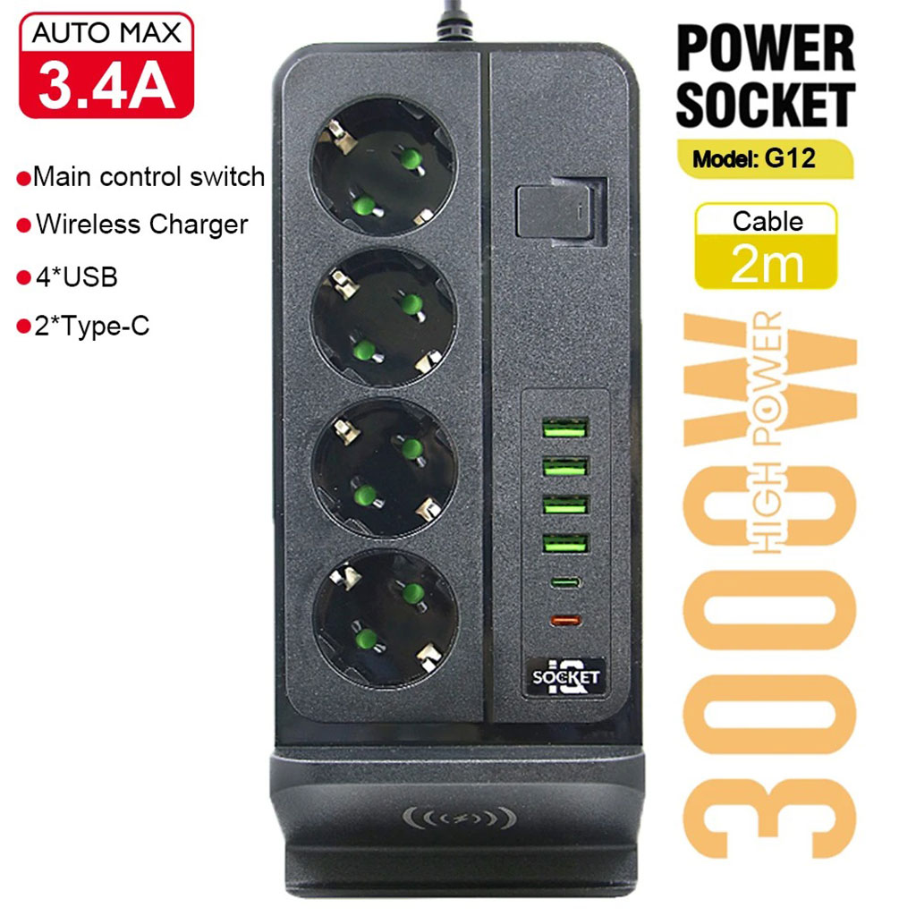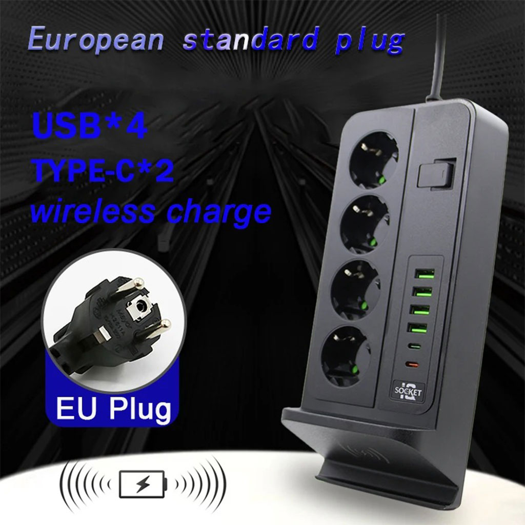✅ 4 منافذ كهربائية أوروبية لتوصيل جميع أجهزتك المنزلية أو المكتبية.✅ 4 منافذ USB-A + منفذي USB Type-C للشحن السريع والمتزامن لعدة أجهزة في وقت واحد.✅ حامل مدمج للهواتف الذكية مع ميزة الشحن اللاسلكي المتوافق مع جميع الأجهزة الداعمة لتقنية Qi.✅ قدرة قصوى 3000 واط، مثالية للأجهزة ذات الاستهلاك العالي للطاقة.✅ حماية ذكية ضد ارتفاع الجهد الكهربائي والتحميل الزائد لضمان استخدام آمن على مدار الساعة.✅ تصميم عمودي أنيق ومدمج يوفر المساحة، مناسب للمكاتب، غرف المعيشة أو غرف النوم.🔧 المواصفات التقنية: