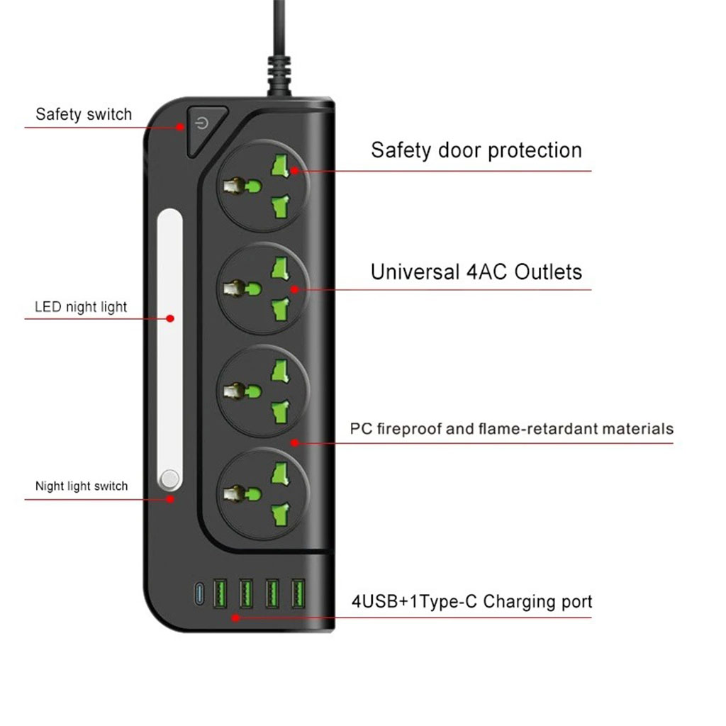حوّل مكتبك أو منزلك لمساحة عملية وأكثر أمانًا مع هذه القاعدة الكهربائية الذكية، المصممة لتلبية احتياجاتك العصرية. تجمع بين القوة، الراحة، والأمان لتكون الرفيق المثالي في حياتك اليومية.