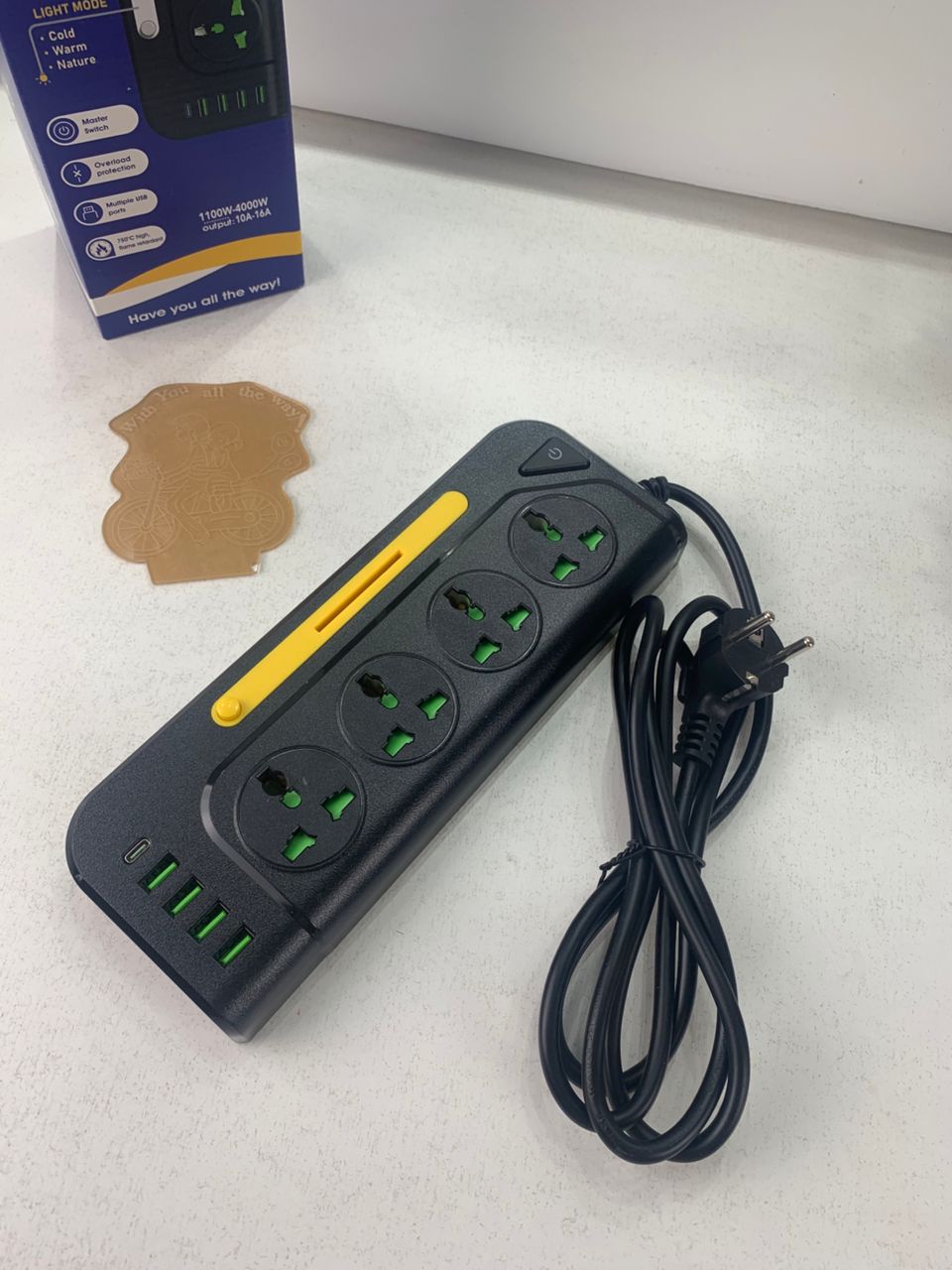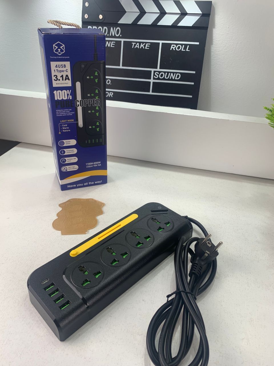 ✨ المميزات الرئيسية :🔋 قدرة قصوى 4000 واط : مناسبة للأجهزة ذات الاستهلاك العالي للطاقة.⚡ 4 منافذ USB مدمجة : 3 منافذ USB-A + منفذ Type-C مع شحن سريع حتى 3.1A.🔗 مصنوعة من النحاس الخالص 100% : توصيل كهربائي ممتاز مع عمر أطول.💡 إضاءة LED بثلاثة أوضاع : ضوء بارد – دافئ – طبيعي لتناسب أجواءك.🔘 مفاتيح تشغيل فردية : تحكم مستقل بكل مقبس لزيادة الأمان وتوفير الطاقة.🔒 حماية من الحمل الزائد : أمان كامل لأجهزتك الإلكترونية.🌍 مقابس عالمية : متوافقة مع معظم المقابس الدولية.🔄 تيار كهربائي من 10A حتى 16A : مرونة عالية لتشغيل عدة أجهزة في وقت واحد.