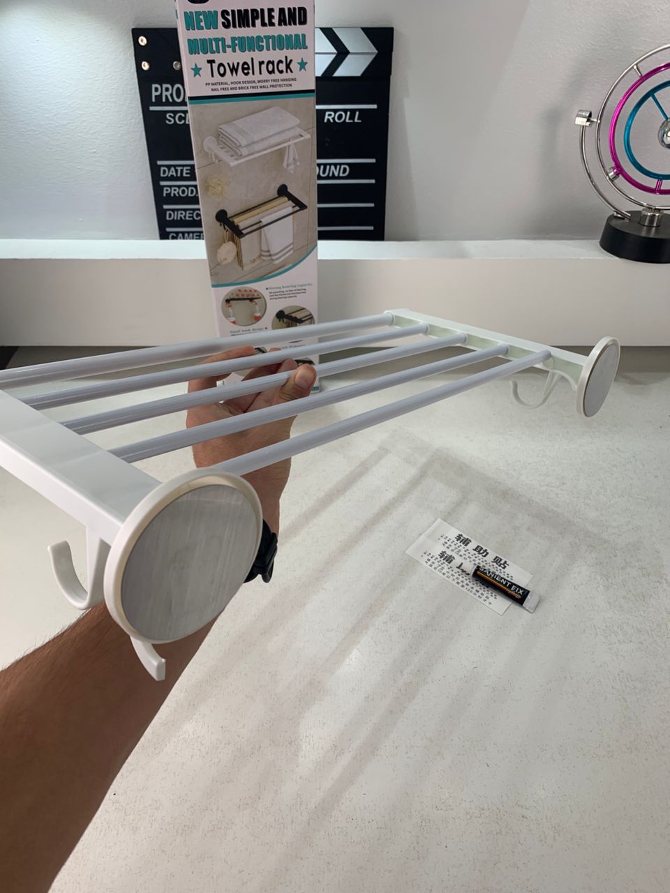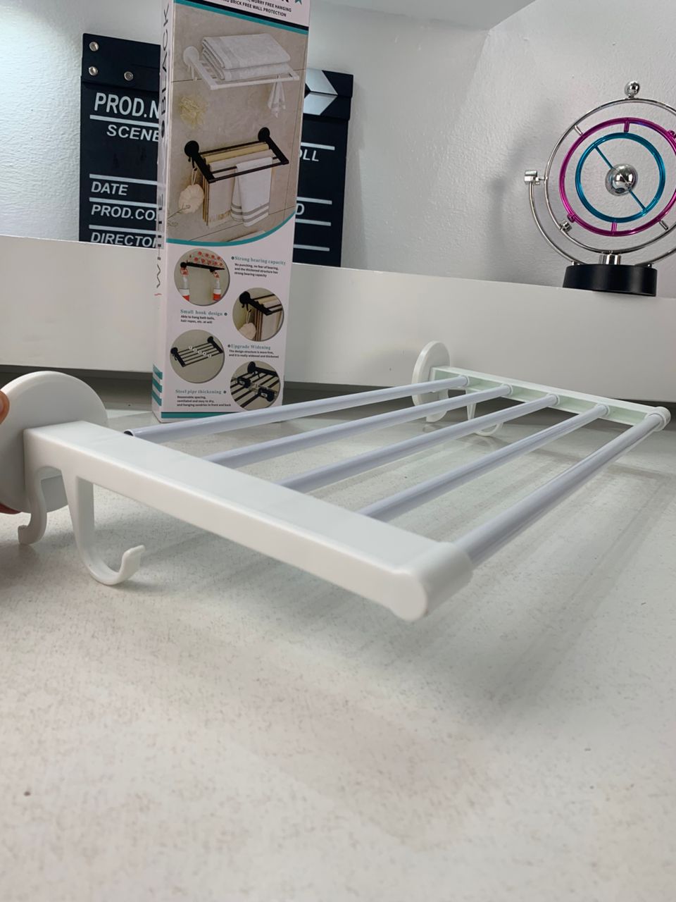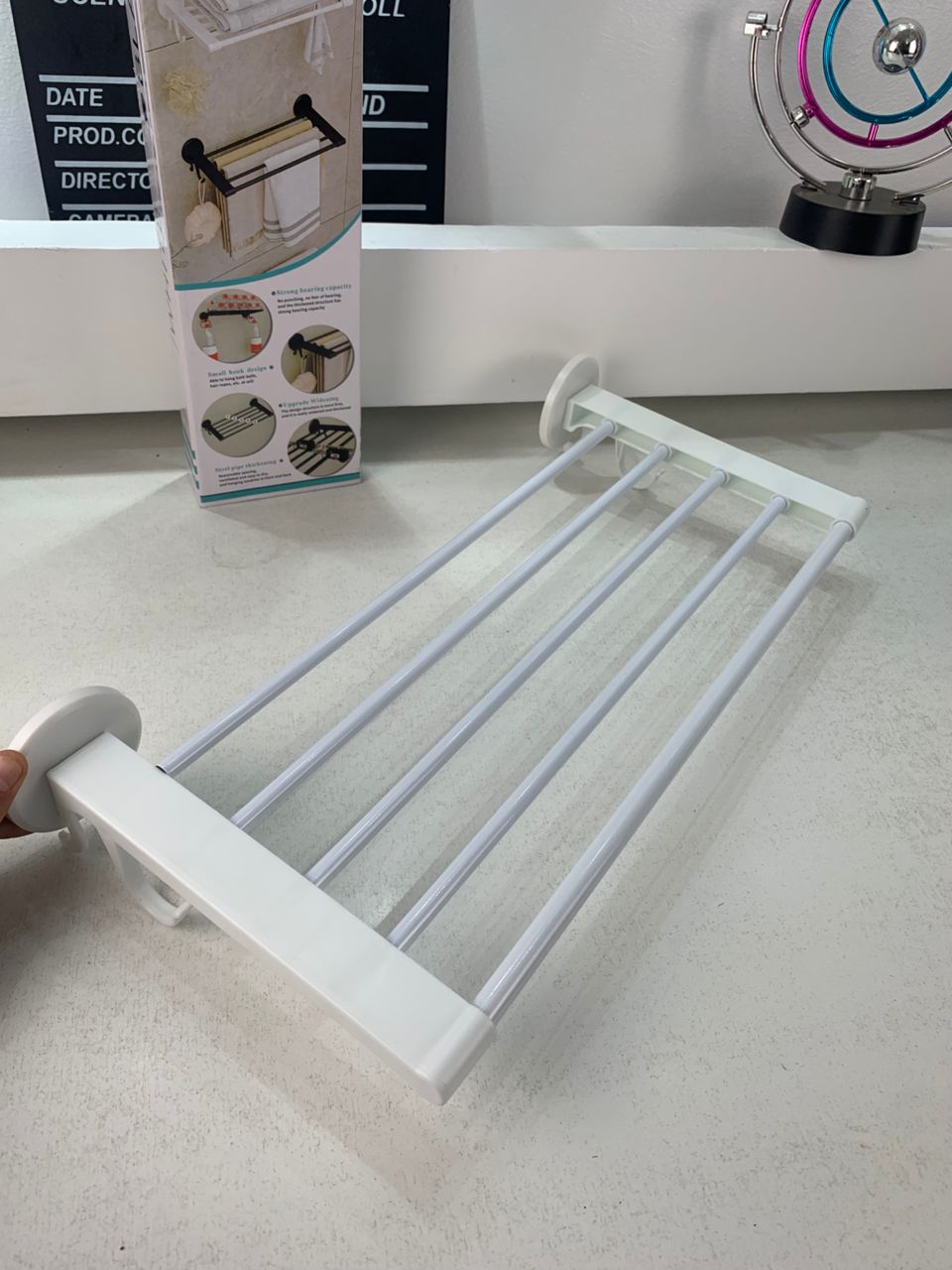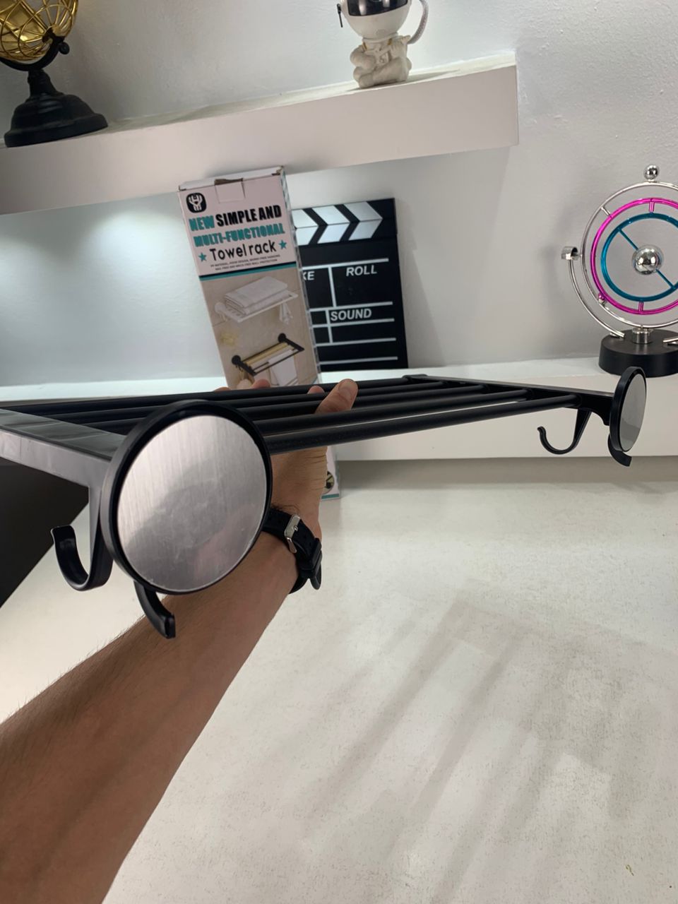 ✅ تثبيت بدون حفر : يثبت بسهولة على الجدار دون الحاجة إلى الحفر، مما يحافظ على الأسطح.✅ تصميم قابل للطي : يمكن طيه عند عدم الاستعمال لتوفير المساحة.✅ مادة عالية الجودة : مصنوع من الألومنيوم المقاوم للصدأ والماء، لضمان المتانة وطول العمر.✅ خطافات مدمجة : يحتوي على خطافات ثابتة ومتحركة لتعليق المناشف، الأرواب، والإكسسوارات الأخرى.✅ تصميم عصري : لمسة أنيقة باللون الأسود تناسب مختلف ديكورات الحمام.🔹 لماذا تختار هذا المنتج ؟