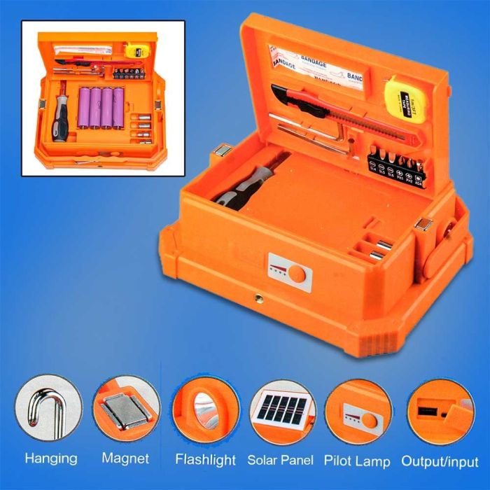 سواء كنت في التخييم، العمل المنزلي أو حالة طوارئ، هذا الكشاف هو رفيقك المثالي. يجمع بين إضاءة فائقة القوة و عدة صيانة متكاملة في قاعدة واحدة، ليمنحك حلاً عملياً في أي مكان وزمان.
