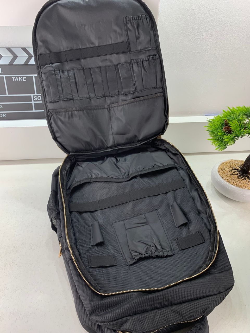 ⭐ المميزات الرئيسية :📦 سعة كبيرة : تقدر تخزن فيها المقصات، الأمشاط، الماكينات، السيشوار، البخاخات، البونشو وغيرها من الأدوات الكبيرة بكل سهولة.💎 مواد عالية الجودة : مصنوعة من نايلون متين وصعب يتشوه + تصميم باللون الأسود المضاد للأوساخ.🌧️ مقاومة للماء : قماش بوليستر سميك ومشفر يحمي الأدوات حتى في حالة المطر.🎒 راحة قصوى : الظهر والأحزمة مبطّنين بإسفنج سميك + أحزمة عريضة لتقليل الضغط على الكتاف والظهر.👨🔧 مناسبة للجميع : مثالية للحلاقين المبتدئين، طلاب مدارس الحلاقة وحتى المحترفين.📐 الأبعاد : 48 × 35 × 20 سم