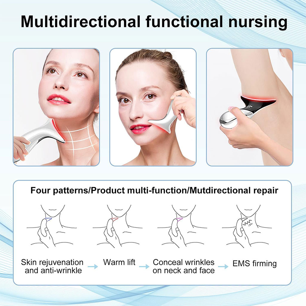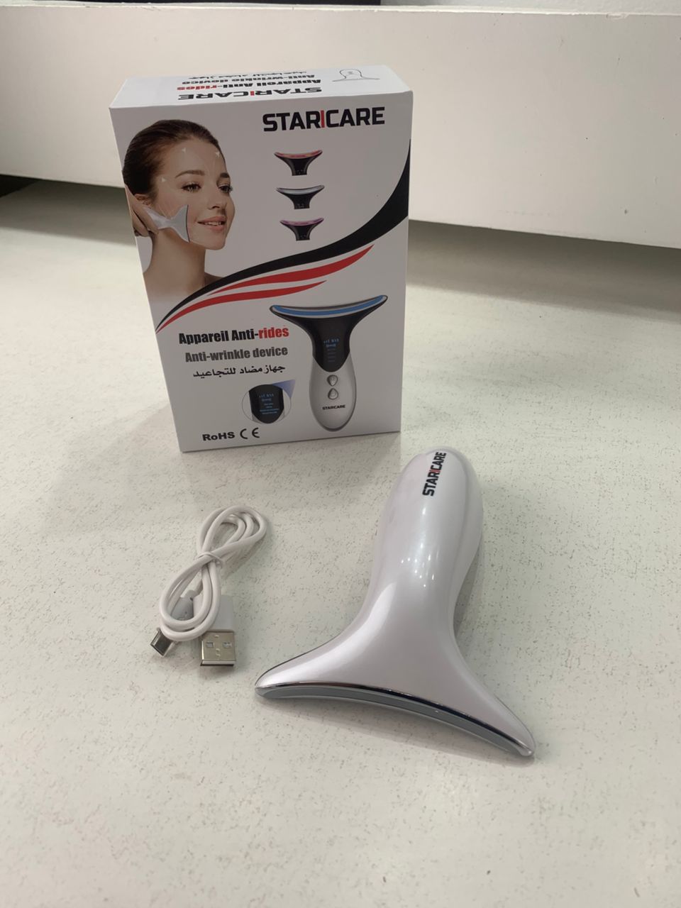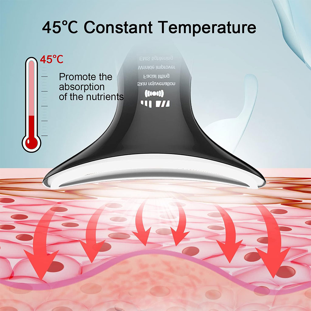 إزالة الذقن المزدوج وتحفيز التصريف اللمفاوي.شدّ الرقبة وتنعيم البشرة.مكافحة التجاعيد.المحافظة على شباب وجمال طبيعي وصحي.تقنية إدخال الأيونات مع ذبذبات عالية التردد 11,000 مرة/دقيقة لامتصاص أعمق وفعالية أكبر لمنتجات العناية بالبشرة.مزوّد بـ 3 أوضاع علاج بالضوء LED : أزرق، بنفسجي وأحمر.تدفئة حرارية لفتح المسام وزيادة امتصاص الكريمات والسيروم.تصميم مقوّس يتناسب مع منحنيات الرقبة والجسم لتدليك انسيابي ومريح.شحن USB عملي وسهل الحمل في أي مكان.متعدد الاستخدامات : لا يقتصر على الرقبة فقط، بل يمكن استخدامه أيضًا على الكتفين وأجزاء أخرى من الجسم لتعزيز فعالية منتجات العناية.📋 المواصفات :