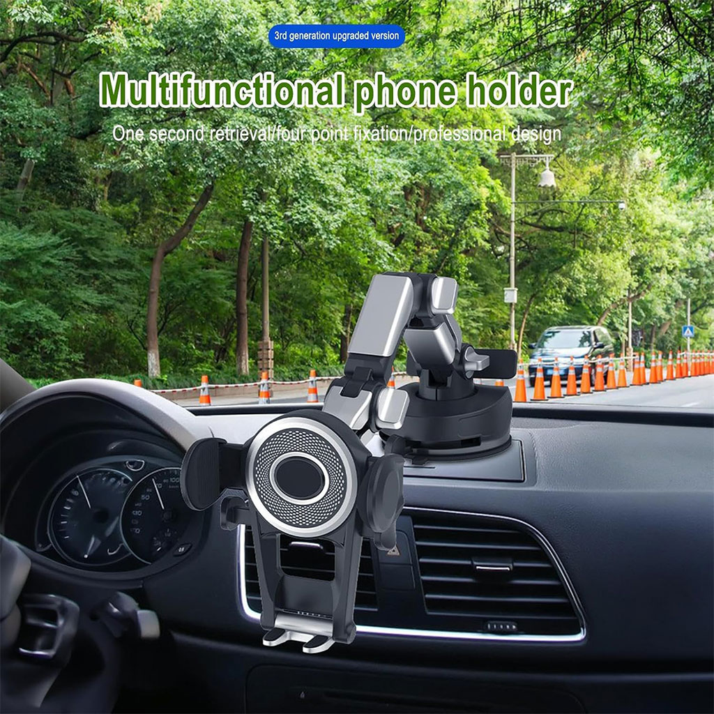 ⭐ المميزات الرئيسية :🔄 دوران كامل 360° : تحكم في زاوية الرؤية كما تحب.📱 متوافق مع جميع الهواتف : يدعم الهواتف الذكية حتى 6.8 بوصة.🛡️ ثبات قوي : أذرع مضادة للانزلاق + نظام قفل بالمسمار لضمان ثبات حتى في الطرق المهزوزة.📏 ذراع تلسكوبي قابل للتعديل : يتمدد وينحني حسب حاجتك، مثالي لاستعمال الـGPS أثناء القيادة.🧲 قاعدة شفط قوية : تثبيت آمن على الزجاج الأمامي أو لوحة القيادة.⚡ تركيب سهل بدون أدوات : قابل لإعادة الوضعية في أي وقت.🎯 مثالي لـ :